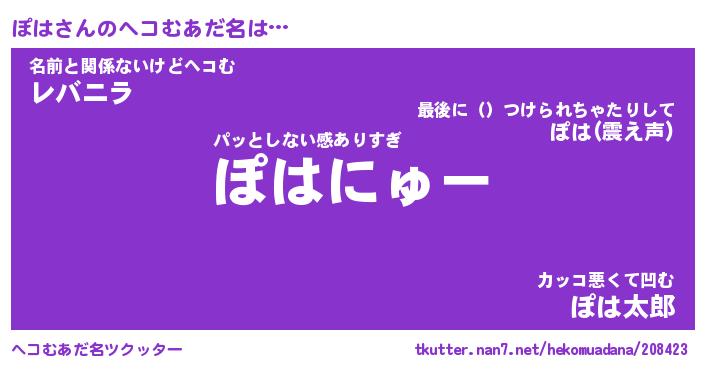 | ポケモン風あだ名 | 『ポハチュウ』『ポハダネ』『ヒポハ』 |