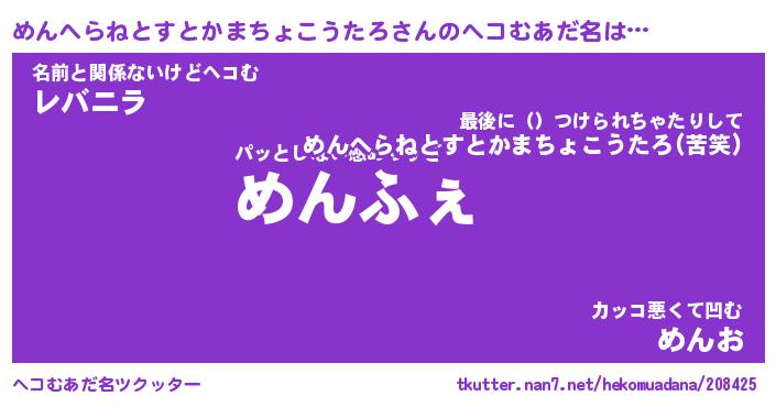 | ポケモン風あだ名 | 『メンチュウ』『メンヘダネ』 |