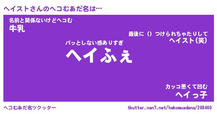 | 自動車の名前っぽいあだ名 | 『ヘイティマ』『ヘクア』『ヴィッヘ』 |
