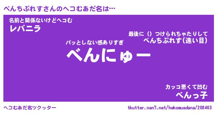 | 意味不明あだ名 | 『ペロリンべんちぷれす』 |