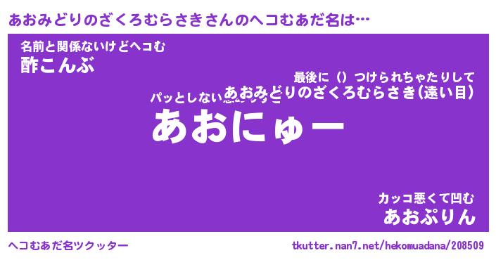 | ヒーロー風カッコイイあだ名 | 『スーパーアオミドリノザクロムラサキ』 |