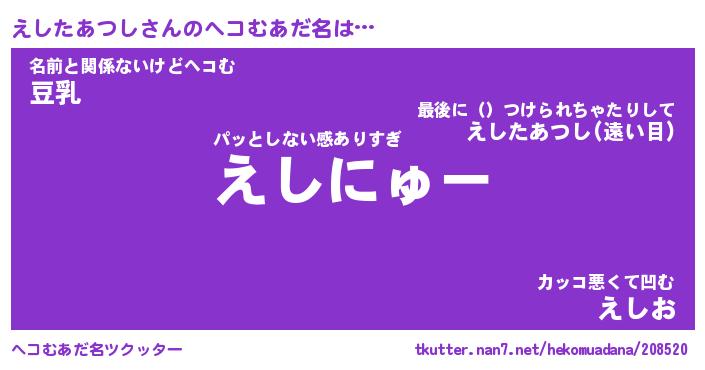 | 意味不明あだ名 | 『ペロリンえしたあつし』 |