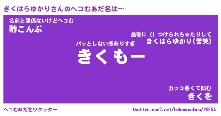 | 男性向けラノベタイトル風あだ名 | 『キクハラユカリアートオンライン』 |