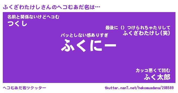| 意味不明あだ名 | 『ペロリンふくざわたけし』 |