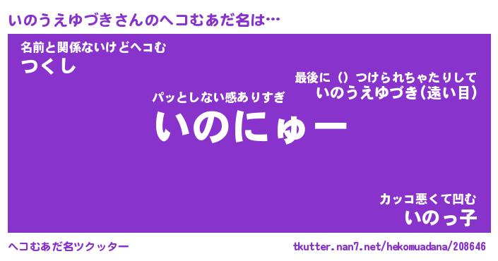 | 男性向けラノベタイトル風あだ名 | 『いのうえゆづきの憂鬱』 |