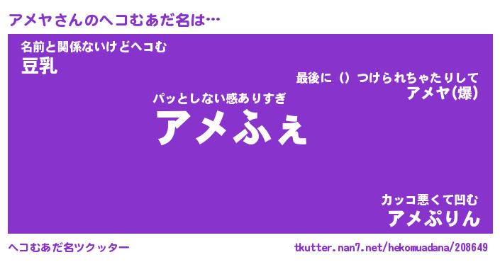 | 意味不明あだ名 | 『ペロリンアメヤ』『アメヤフォーエバー』 |