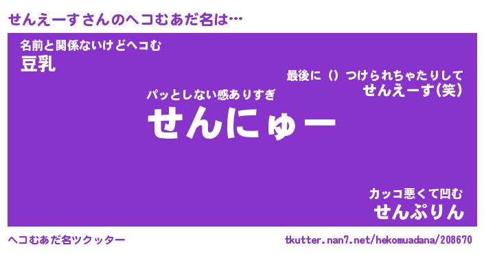 | 胡散臭い通販商品みたいなあだ名 | 『モテモテ間違いなし水晶球…その名も「せんえーす」』 |