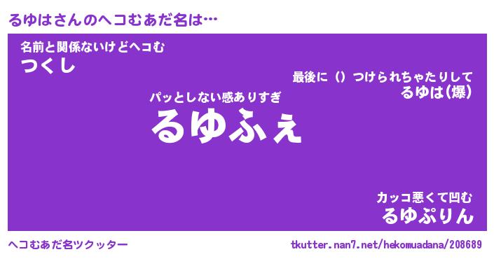 | 意味不明あだ名 | 『ペロリンるゆは』『るゆはフォーエバー』 |