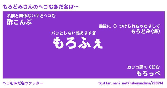| 男性向けラノベタイトル風あだ名 | 『もろどみの憂鬱』 |