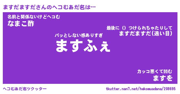 | 胡散臭い通販商品みたいなあだ名 | 『必ず成功するブレスレット…その名も「ますだますだ」』 |