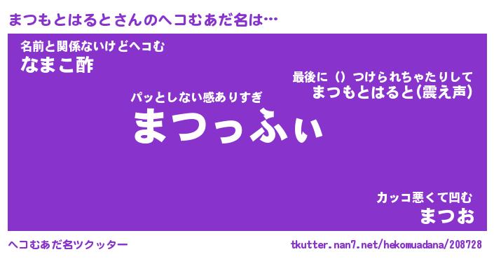 | ポケモン風あだ名 | 『マツチュウ』『マツモダネ』 |