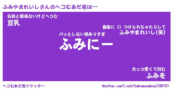 | 男性向けラノベタイトル風あだ名 | 『ふみやまれいしの憂鬱』 |