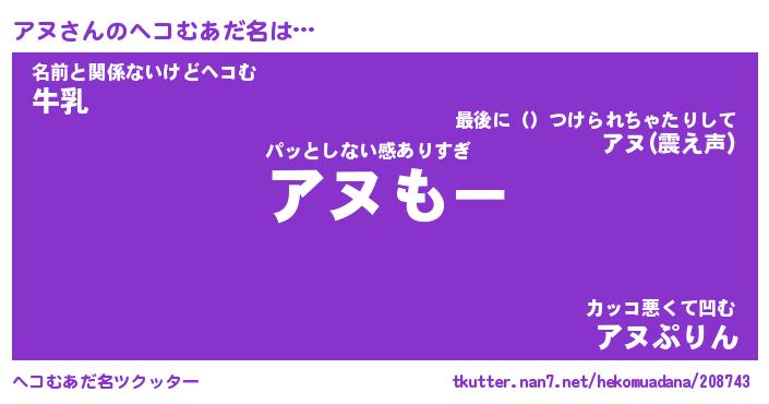 | ポケモン風あだ名 | 『アヌチュウ』『アヌダネ』『ヒアヌ』 |