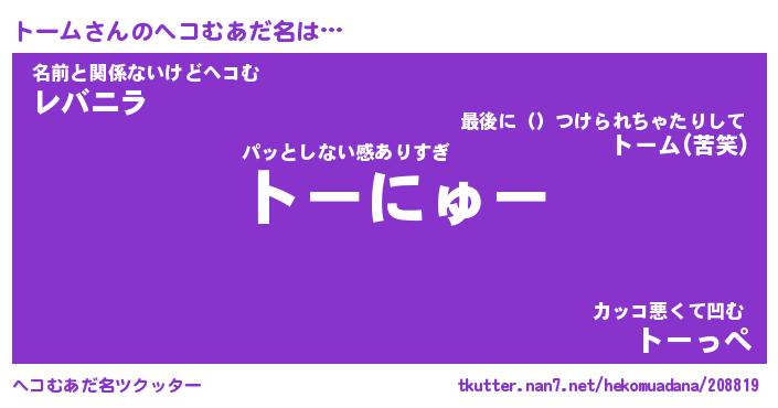 | ヒーロー風カッコイイあだ名 | 『スーパートーム』『ウルトラトームマン』 |