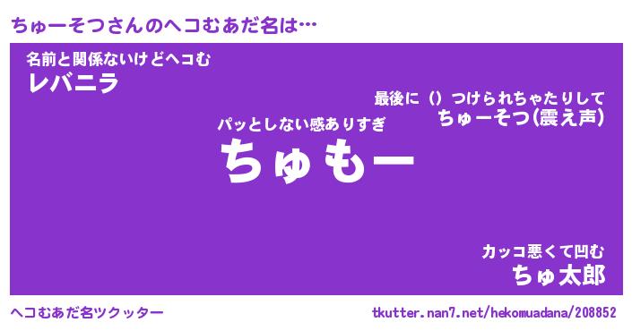 | ファンタジー風あだ名 | 『チュフェル』『エターナルチューソツー』 |
