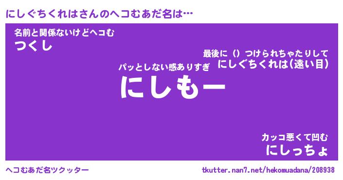 | ポケモン風あだ名 | 『ニシチュウ』『ニシグダネ』 |