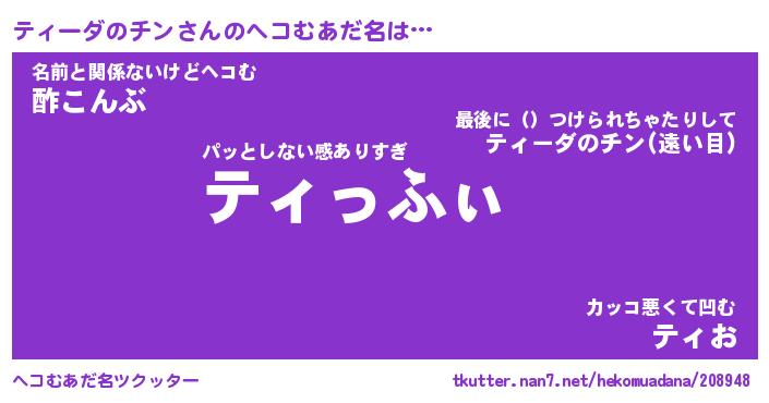 | ポケモン風あだ名 | 『ティチュウ』『ティーダネ』 |