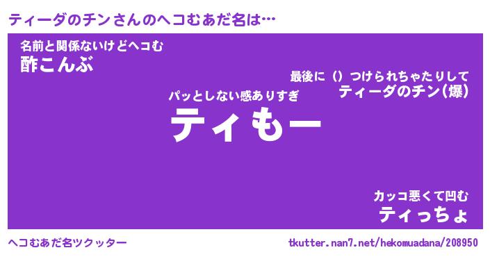 | ポケモン風あだ名 | 『ティチュウ』『ティーダネ』 |