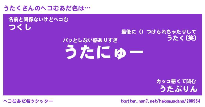 | ポケモン風あだ名 | 『ウタチュウ』『ウタクダネ』 |