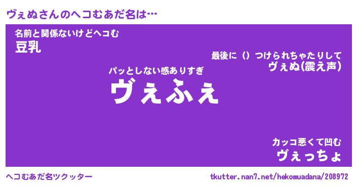 | ファンタジー風あだ名 | 『ヴェフェル』『エターナルヴェヌー』 |