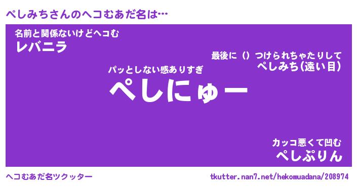 | 意味不明あだ名 | 『ペロリンぺしみち』『永久保存ぺしみち』 |