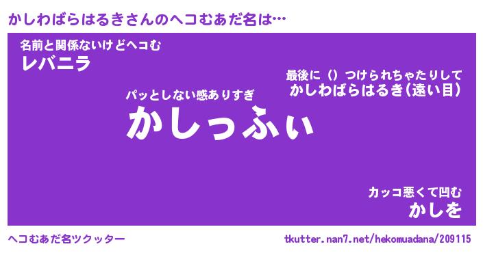 | 胡散臭い通販商品みたいなあだ名 | 『必ず成功する霊験あらたかなお札…その名も「かしわばらはるき」』 |