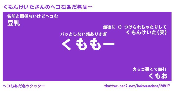 | 恥ずかしいあだ名 | 『プリティーくもんけいた』『くもっちょ』 |