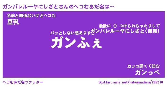 | 男性向けラノベタイトル風あだ名 | 『ガンバレルーヤニシザトアートオンライン』 |
