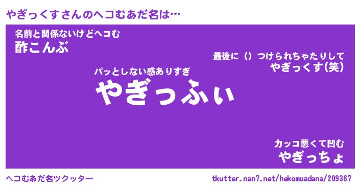 | 2回繰り返すあだ名 | 『やぎやぎ』『ややぎぎ』『にたにた』 |