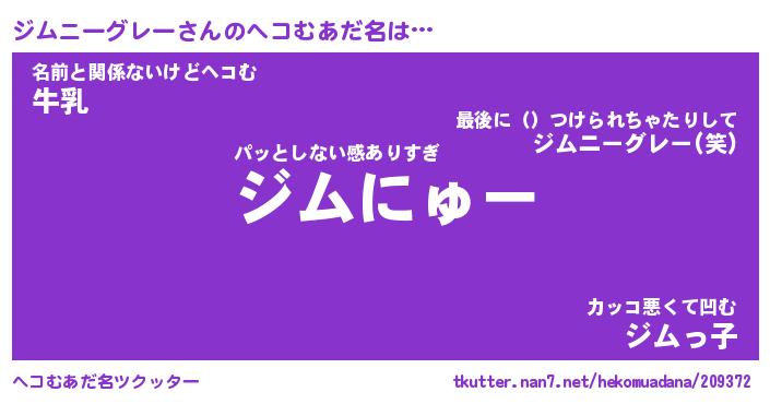 | 恥ずかしいあだ名 | 『プリティージムニーグレー』『ジムちん』 |