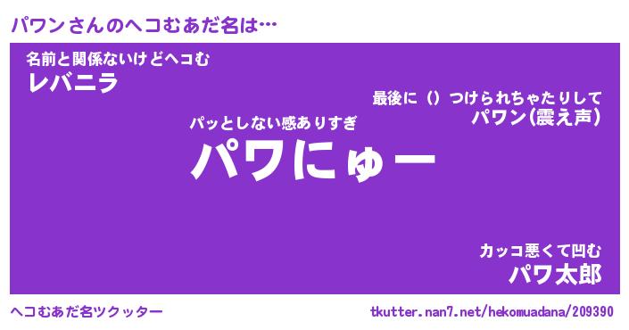 | 男性向けラノベタイトル風あだ名 | 『パワンの憂鬱』 |