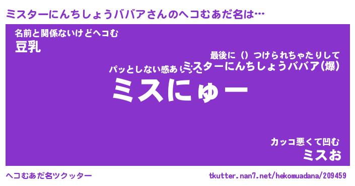 | 料理風あだ名 | 『ほっこり♪ミスターにんちしょうババアの味噌そぼろ煮』 |