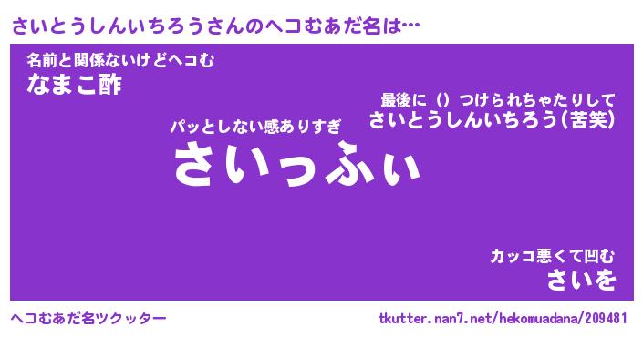 | 意味不明あだ名 | 『ペロリンさいとうしんいちろう』 |