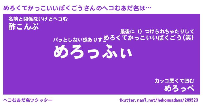 | 意味不明あだ名 | 『ペロリンめろくてかっこいいばくごう』 |