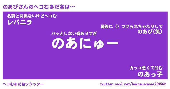 | 意味不明あだ名 | 『ペロリンのあぴ』『のあぴフォーエバー』 |