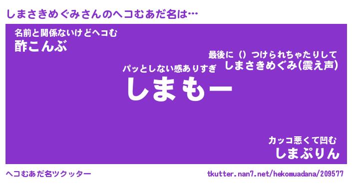 | 男性向けラノベタイトル風あだ名 | 『しまさきめぐみの憂鬱』 |