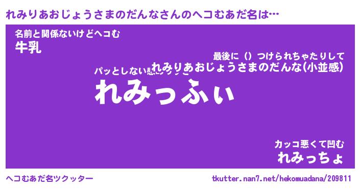| 2回繰り返すあだ名 | 『れみれみ』『れれみみ』『なあなあ』 |
