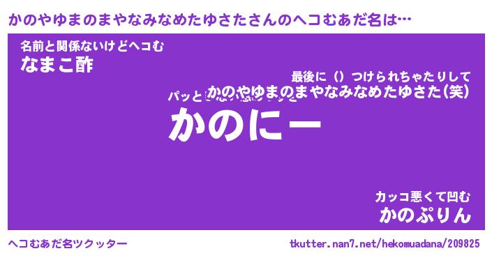 | 男性向けラノベタイトル風あだ名 | 『カノヤユマノマヤナミナメタユサタアートオンライン』 |