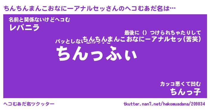 | 意味不明あだ名 | 『ペロリンちんちんまんこおなにーアナルセッ』 |