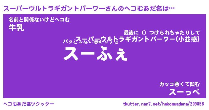 | 恥ずかしいあだ名 | 『プリティースーパーウルトラギガントパーワー』 |
