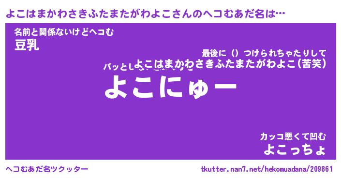 | 胡散臭い通販商品みたいなあだ名 | 『億万長者になれる水晶球…その名も「よこはまかわさきふたまたがわよこ」』 |