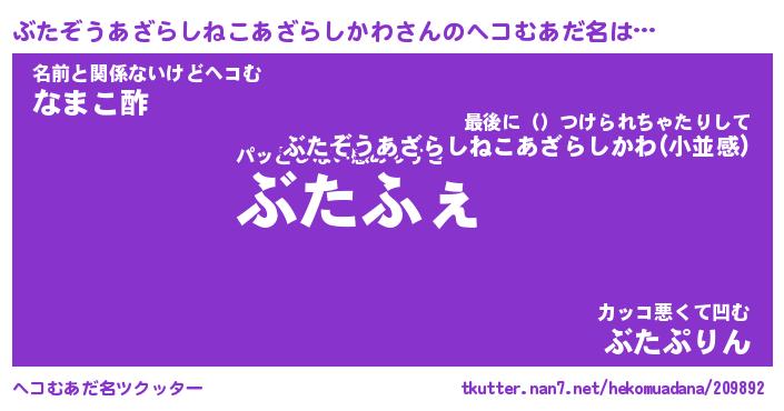 | ポケモン風あだ名 | 『ブタチュウ』『ブタゾダネ』 |