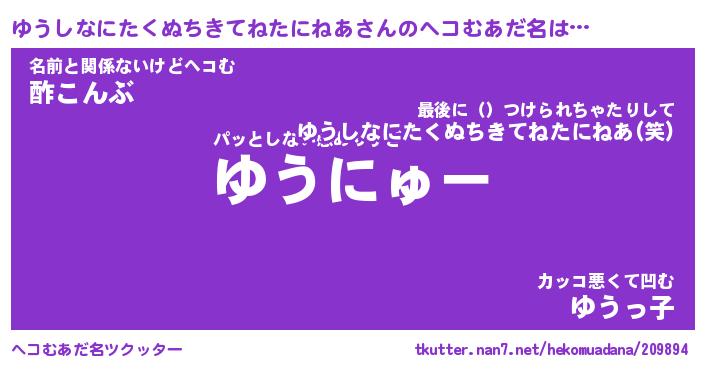 | 恥ずかしいあだ名 | 『プリティーゆうしなにたくぬちきてねたにねあ』 |