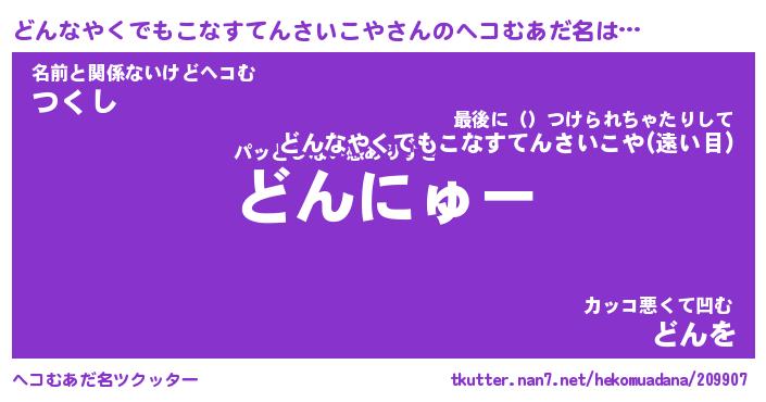 | ヒーロー風カッコイイあだ名 | 『スーパードンナヤクデモコナステンサイコヤ』 |