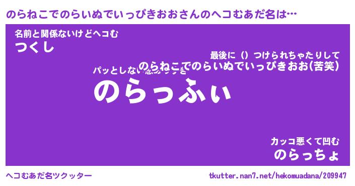 | ヒーロー風カッコイイあだ名 | 『スーパーノラネコデノライヌデイッピキオオ』 |