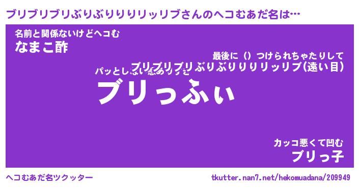 | 胡散臭い通販商品みたいなあだ名 | 『モテモテ間違いなし霊験あらたかなお札…その名も「ブリブリブリぶりぶりりりリッリブ」』 |