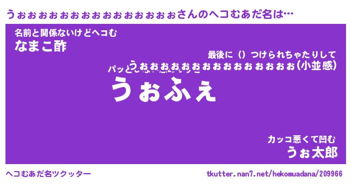 | 男性向けラノベタイトル風あだ名 | 『うぉぉぉぉぉぉぉぉぉぉぉぉぉぉぉの憂鬱』 |