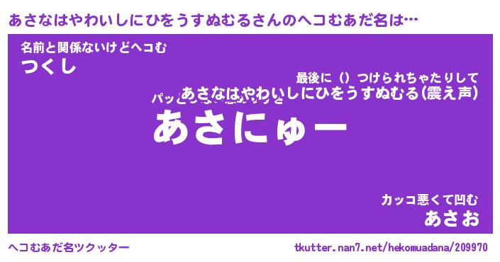 | 恥ずかしいあだ名 | 『プリティーあさなはやわいしにひをうすぬむる』 |