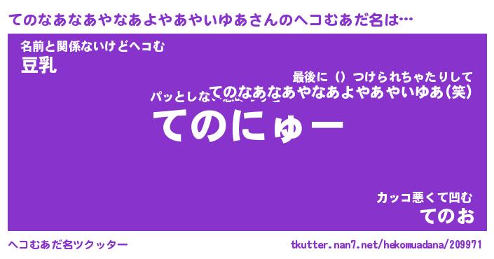 | ヒーロー風カッコイイあだ名 | 『スーパーテノナアナアヤナアヨヤアヤイユア』 |