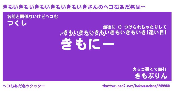 | 男性向けラノベタイトル風あだ名 | 『きもいきもいきもいきもいきもいきの憂鬱』 |